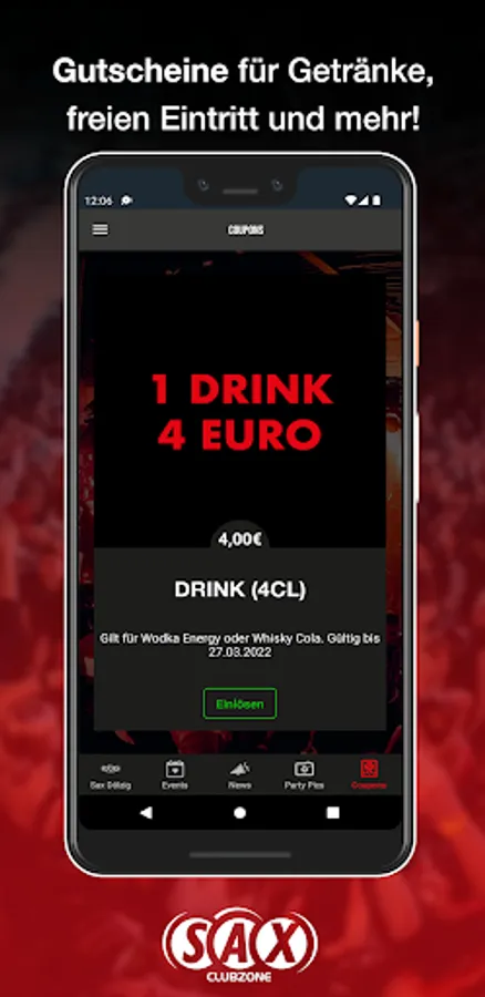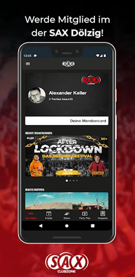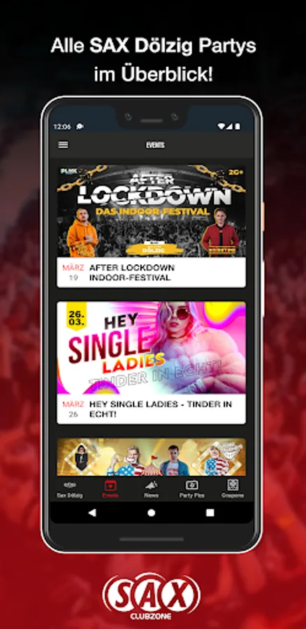 You'll be the first to know when the next party is on and you'll benefit from great promotions. You save money with our vouchers for the event. We provide all the party pics in the app so that you can remember the awesome evening the day after.