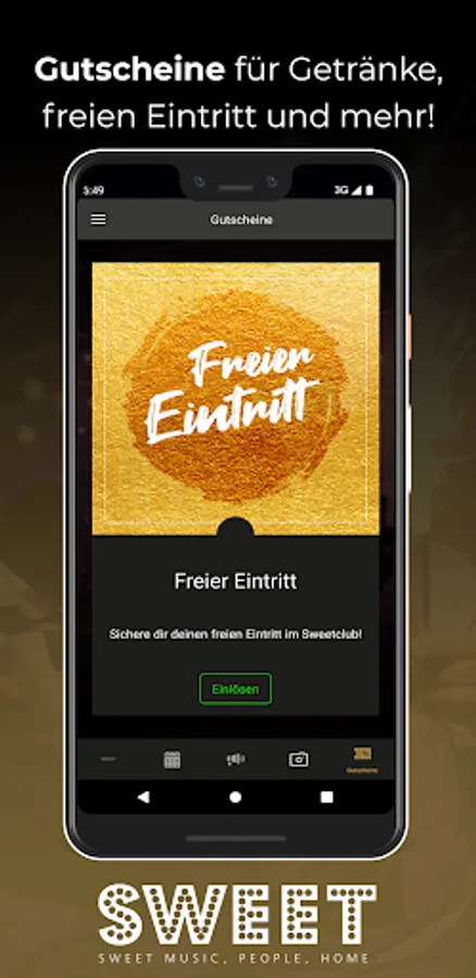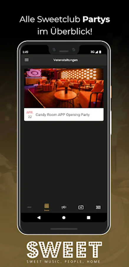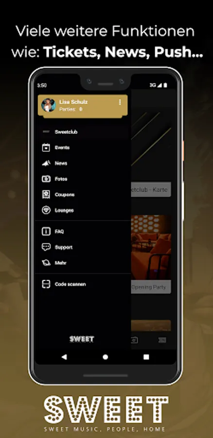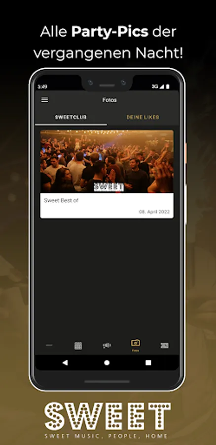 You'll be the first to know when the next party is on and you'll benefit from great promotions. You save money with our vouchers for the event. We provide all the party pics in the app so that you can remember the awesome evening the day after.