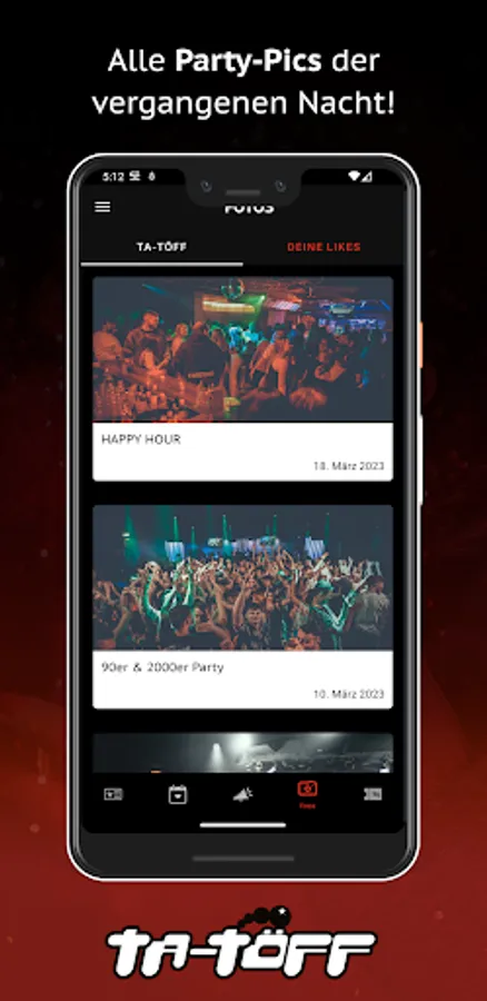 You'll be the first to know when the next party is on and you'll benefit from great promotions. You save money with our vouchers for the event. We provide all the party pics in the app so that you can remember the awesome evening the day after.