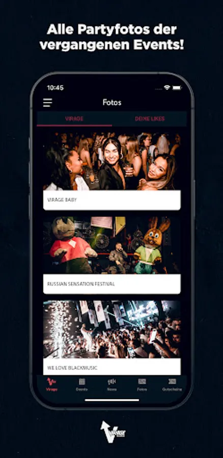 You'll be the first to know when the next party is on and you'll benefit from great promotions. You save money with our vouchers for the event. We provide all the party pics in the app so that you can remember the awesome evening the day after.
