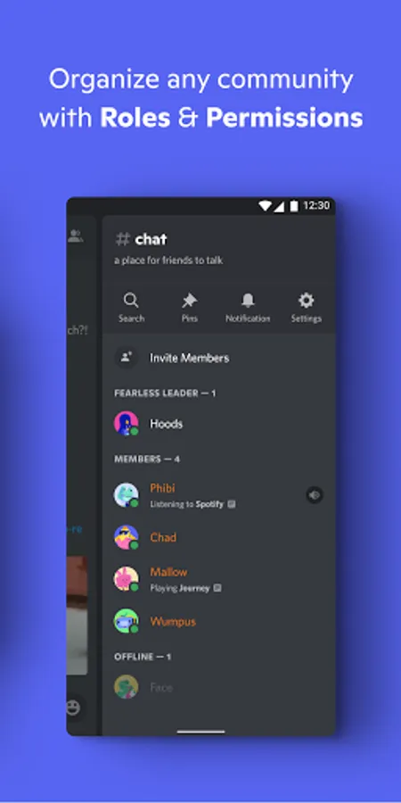 • Create moderators, give special members access to private channels, and much more.