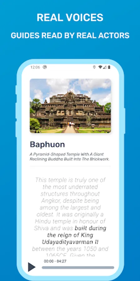 ✔️Complete: with 43 attractions, discover wonders like the Bayon temple, the Baphuon, Prasat Kravan, Ta Prohm and many more. Each attraction has a detailed and engaging audio guide.