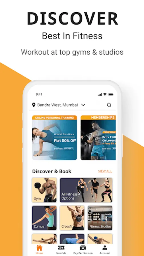 • Explore & book gym, yoga, Zumba, dance, MMA kickboxing, swimming, marathon training, pilates, spinning & indoor cycling, luxury hotels, aerial fitness, prenatal classes, kids fitness, aqua fitness and crossfit classes network of 12,000+ fitness studios and trainers