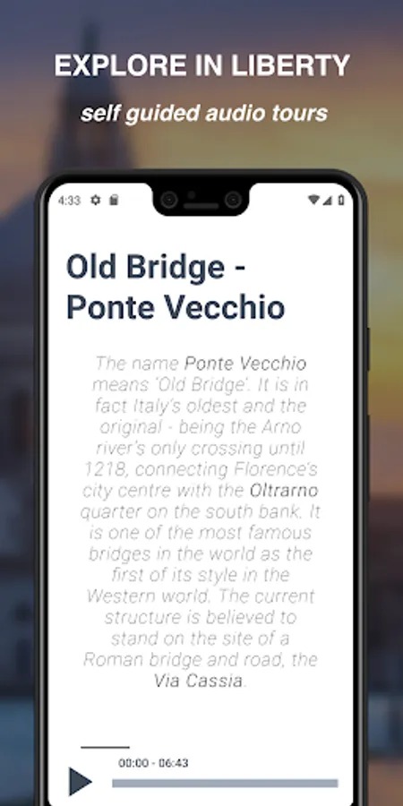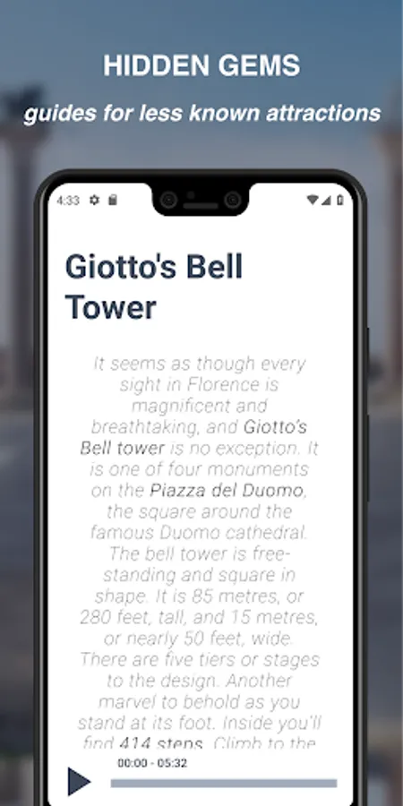 ✔️Complete: with 50 attractions, discover wonders like the Old Bridge, the Lodge of the Lancers, Giotto's Bell Tower, Palazzo Pitti and many more. Each attraction has a detailed and engaging audio guide.