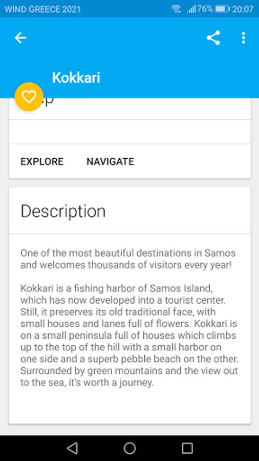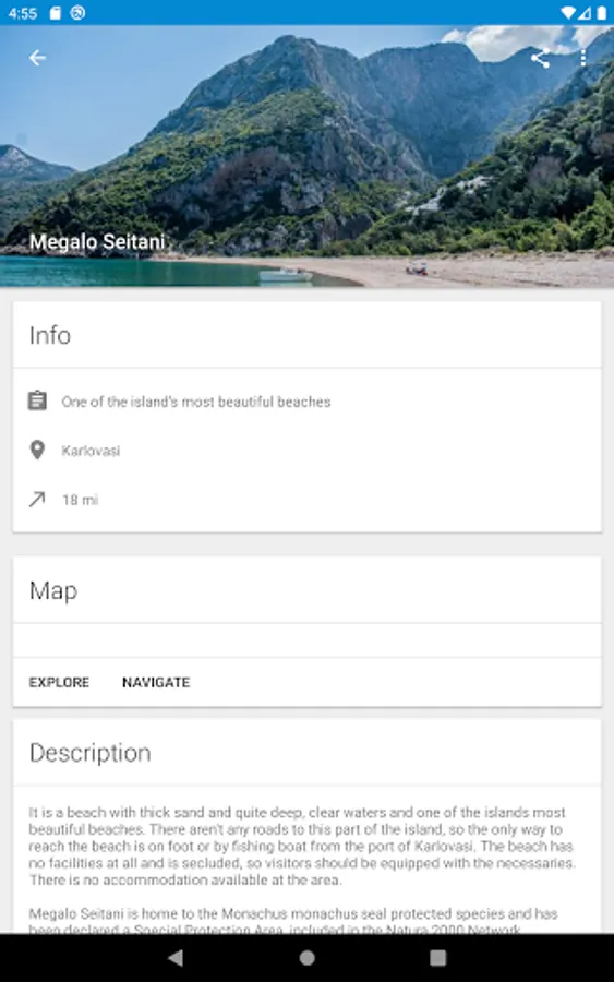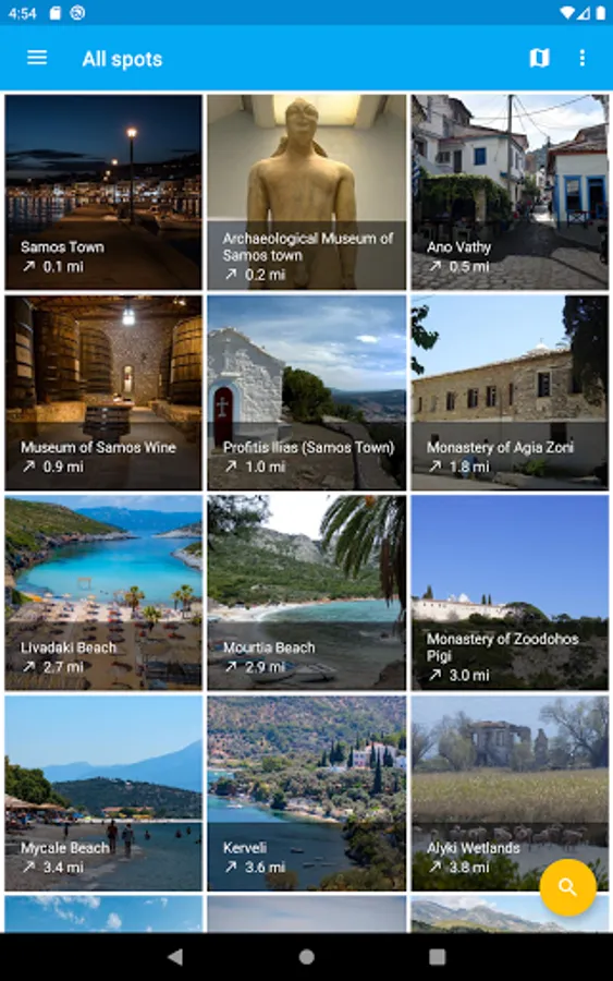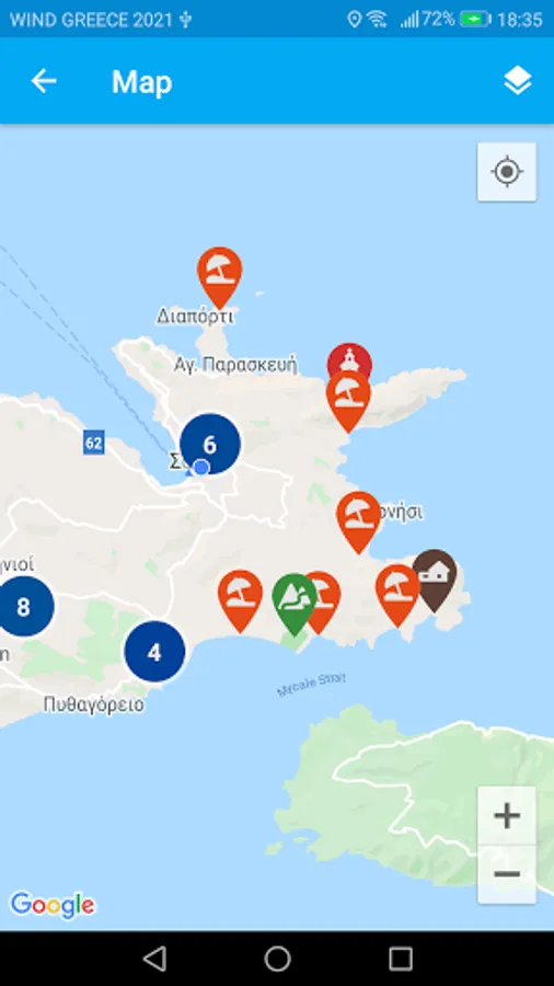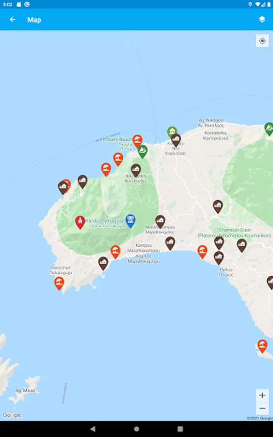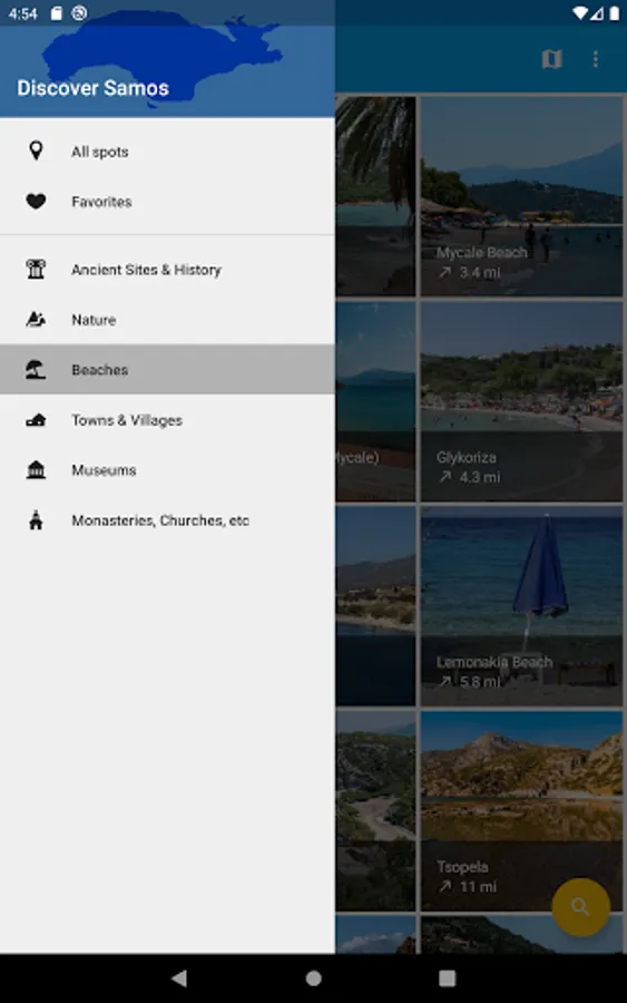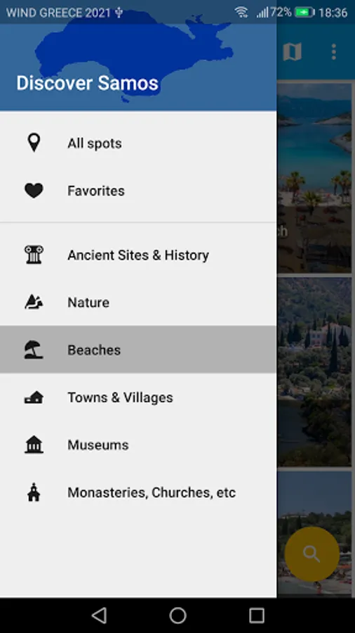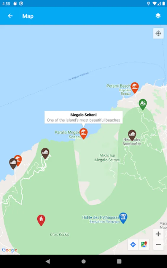 The Discover Samos Guide content are fully downloaded and stored on your device. All features, such as address searches and your GPS location also work offline!