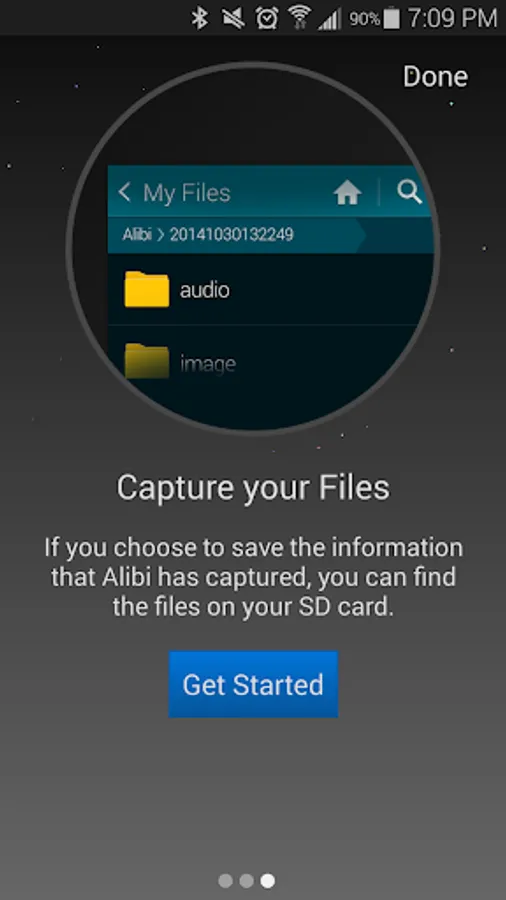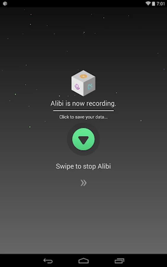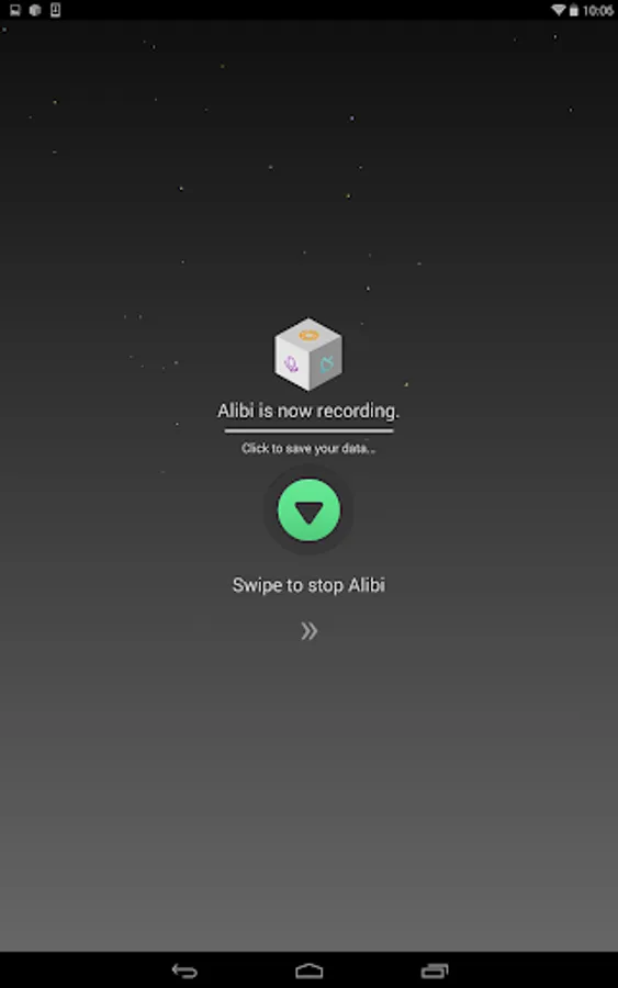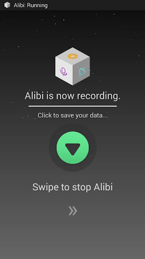 Once Alibi has captured evidence that you would like to save, open the app and save the data to your local storage, compressed and hidden to prevent it from being tampered with. Think of it as a body camera, or a personal DVR for your life. Alibi never stores or shares any data with any party for any reason.