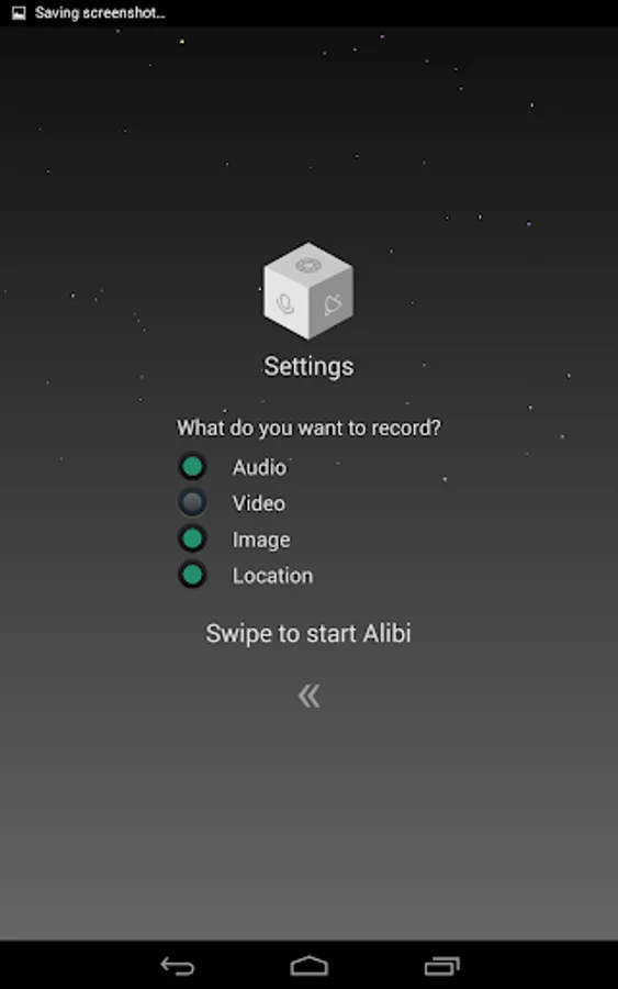 When activated, Alibi will constantly collect the last hour of audio, video and location data from your Android device and temporarily store it to the phone's cache. It is optimized not to deplete your battery, and runs discreetly in the background.