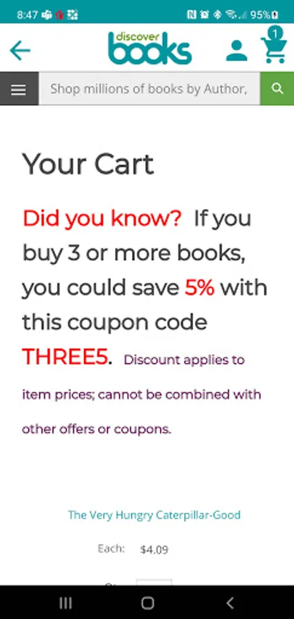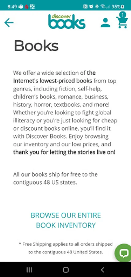 Discover Books app allows book lovers to quickly and easily purchase favorite new and used books at low prices – starting at $3.85. No more looking for the where to buy cheap books online, this app brings the store to you. All our books come with free shipping to the lower 48 states USA. With millions of new and gently used books in our inventory everyone will find something to read.
