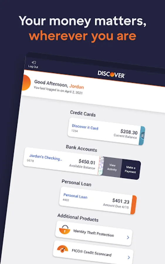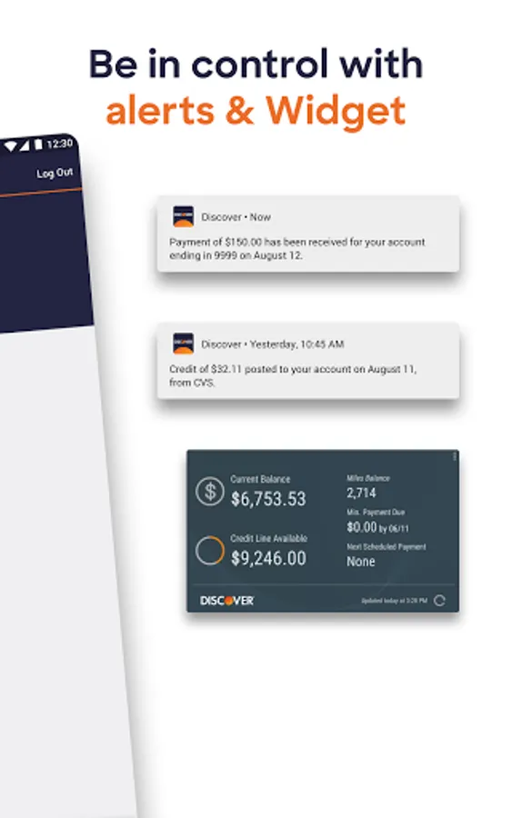 You can manage your Discover credit card and bank accounts conveniently and securely from anywhere, using Discover’s Mobile App. Check your account balance, view your account info, make and edit payments, manage your rewards, and more - all from your mobile device.