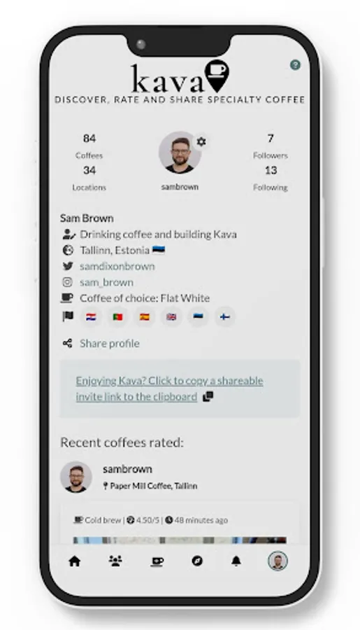 Rate the coffees you drink and share images, comments, and likes with your followers. Follow your friends around the world and see what coffees they're drinking.