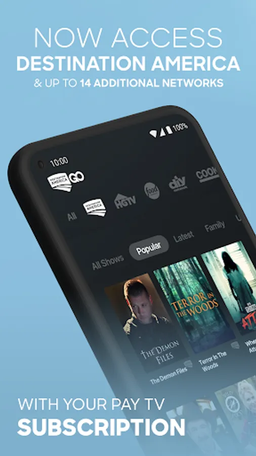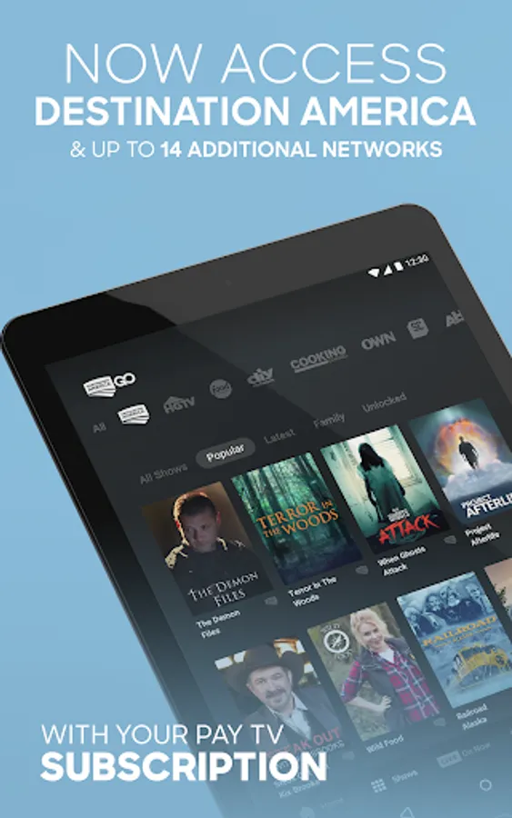 "Catch up with your favorite Destination America shows anytime, anywhere with the all-new Destination America GO app - and now get access to up to 14 additional networks including Food Network, Discovery, HGTV, ID and more - all in one app. It’s FREE with your pay TV subscription.
