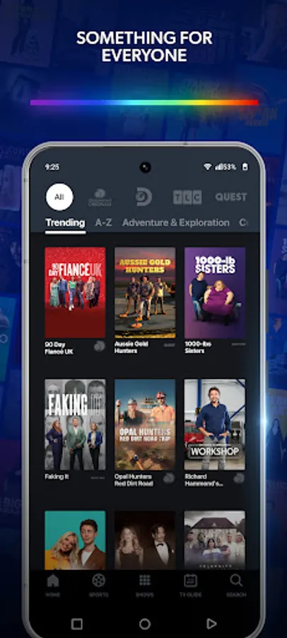 • Browse or search with ease across: Unique Lifestyles, True Crime, Adventure, Home, Sports*, Food, Paranormal, Dating & Relationships, Reality, Science & Nature, and more.