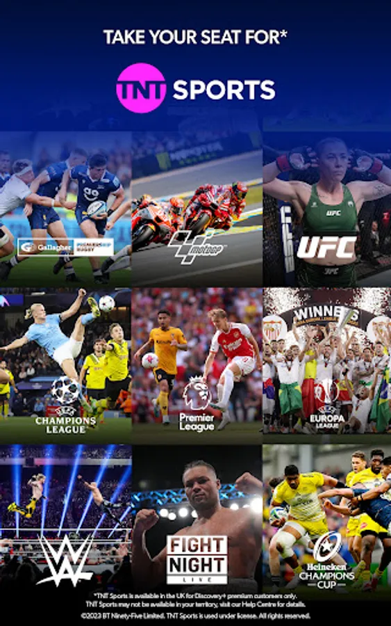 • Get instant access to TNT Sports channels. Experience live coverage of UEFA Champions League and Europa League matches, plus Premier League games (only available in the UK).