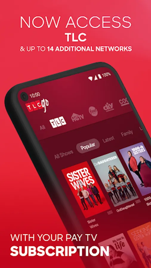 Catch up with your favorite TLC shows anytime, anywhere with the all-new TLC GO app - and now get access to up to 14 additional networks including Food Network, ID, Travel Channel, Discovery and more - all in one app. It’s FREE with your pay TV subscription.