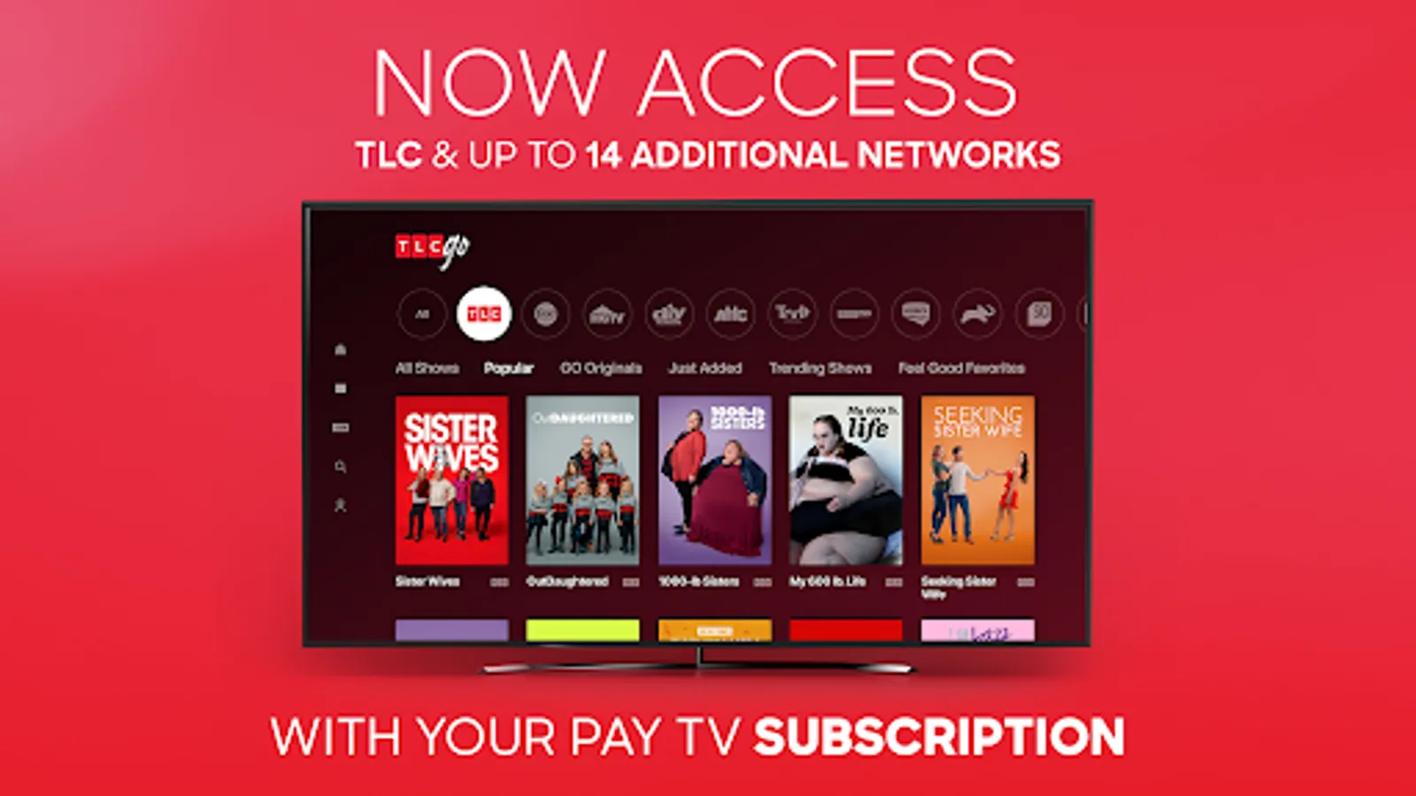 Catch up with your favorite TLC shows anytime, anywhere with the all-new TLC GO app - and now get access to up to 14 additional networks including Food Network, ID, Travel Channel, Discovery and more - all in one app. It’s FREE with your pay TV subscription.