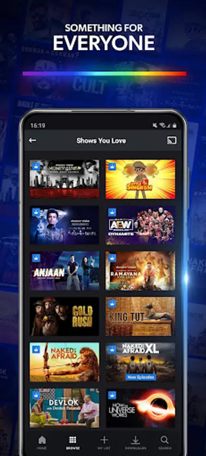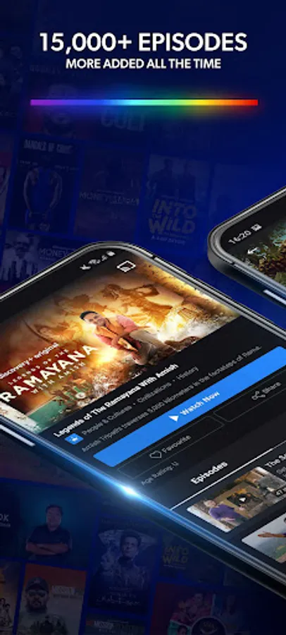 You can watch your favourite shows like Man vs Wild, Star Vs Food, Secrets of The Buddha Relics, History Hunter, Star vs Food Survival, Secrets of Kohinoor, Love Kills, Money Mafia, Gold Rush, Project Runway, Hell's Kitchen, American Chopper, NASA’s Explained Files, Fast N' Loud, Into The Wild, A Haunting and many more, anytime on the app.