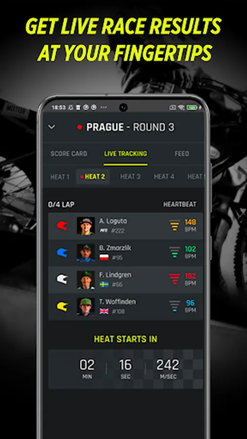 Whether you’re in Prague, Paris or Perth, get live race results at your fingertips, as well as timing data, and see who hits the all-important turn one first with our brand-new holeshot feature.