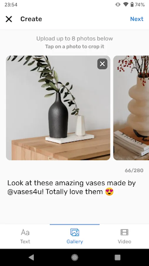 • Post text, images, and videos, on interesting products you discover or share your own creations.