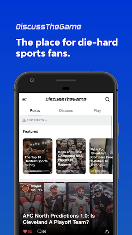 Discuss the Game is a community-powered platform for sports fans where users can create sports content, express their sports opinions, have discussions, and chat and connect with fans around their favorite sports and teams.