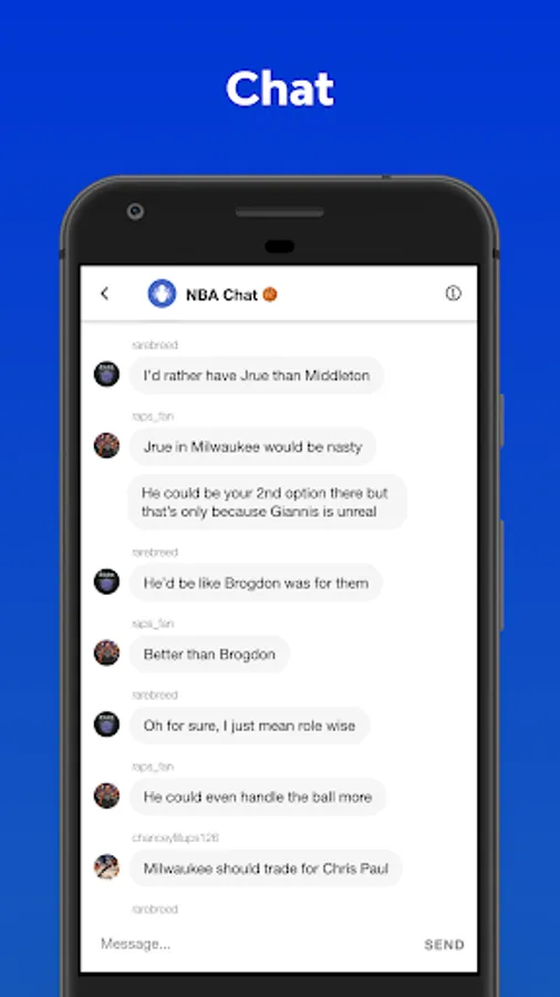 •Select your favorite leagues and teams and join group chats with users who share the same sports passions