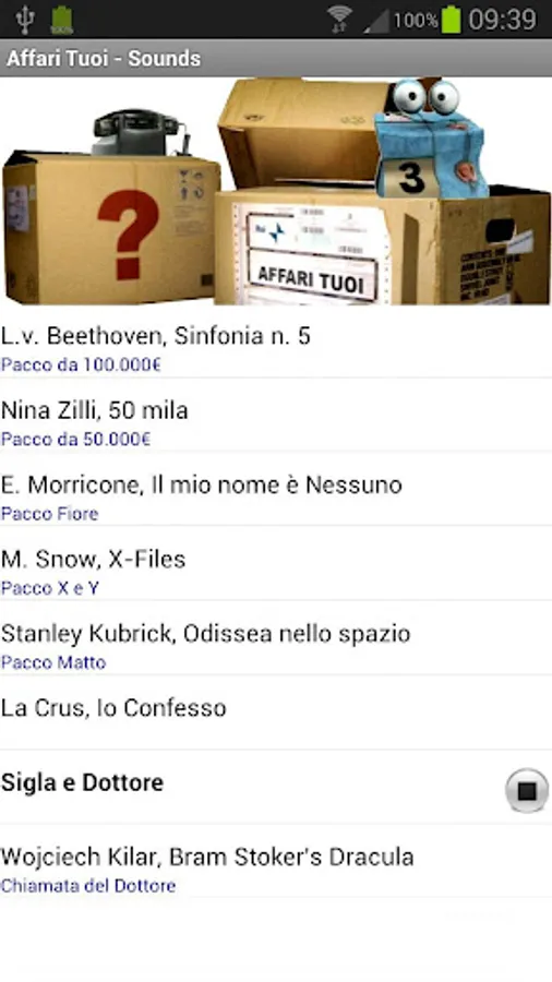 I created this application thinking about all those housewives "as my mother," that during the day continue to hum the music of Affari Tuoi with some song ever "in his head" like a drum pounding and those nearby. I hope that with this application, the stop "whining" by listening to these pieces of music taken from the program Affari Tuoi.