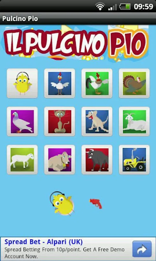 The application in question reproduces the sounds of the animals of the song Pulcino Pio by pressing the buttons of each animal.