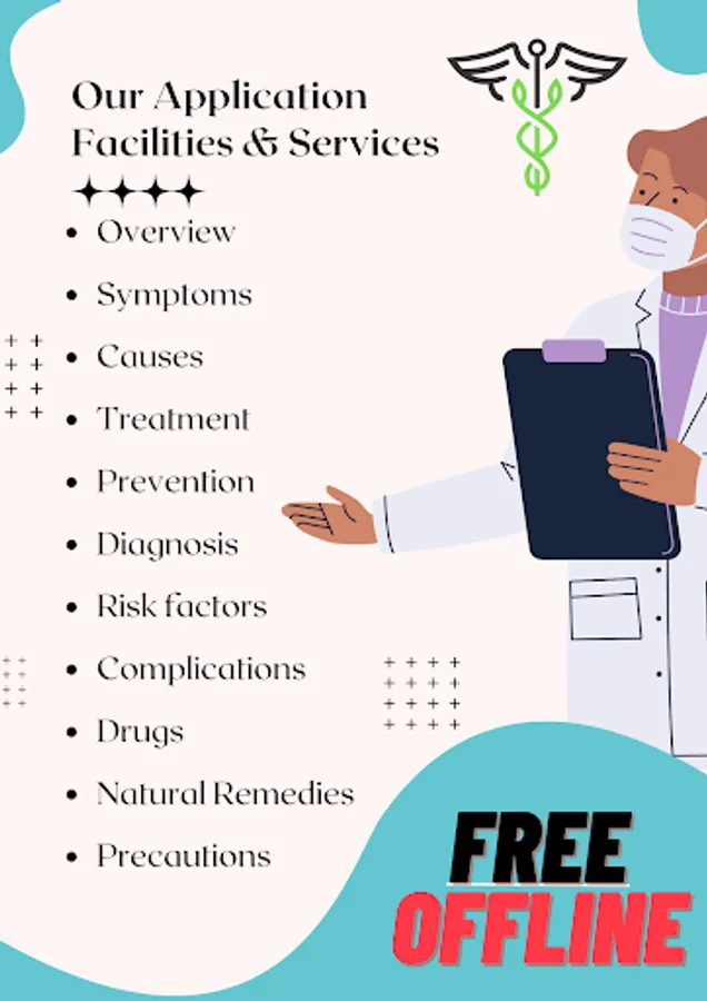 This Diseases Treatment Dictionary Offline Free App is more related categories below mention topics: Acne, Asthma, Arterial, Autoimmune, Bacterial Vaginosis, breast cancer, Birth, Bleeding, Blood, Bone, Brain, Cancer, Communicable, Candidiasis, Congenital, Genetic Diseases, Congenital, Dental, Diabetes, Eye, Ear, Epilepsy, Nose, Throat Diseases, Endocrine, Esophageal motility, Fever, Female Reproductive Diseases, Foodborne parasitic, Fungal, Gastric, Gonorrhoea, Gastrointestinal, Heart, HIV, Hereditary Cancer Syndromes, Hypertensive Heart Disease, Hepatitis B, Human, Infections, Kidney, Liver, Lung, Mental Disorder, Metabolic, Malaria, Neurological, Nutrition's, Orchitis, Over Growth, Piles, Pelvic inflammatory, Parasitic, Pulmo, Pregnancy, Respiratory, Renal, Ringworm, Stomach Ulcer, Syphilis, Skin, Sleep, Tumor, Tuberculosis, Typhoid, Urinary, Viral infections, Vaginitis, Vitamin Deficiency, kid’s care, Women's Health, General Health & wellness, Animal Diseases, Plants, etc.,.