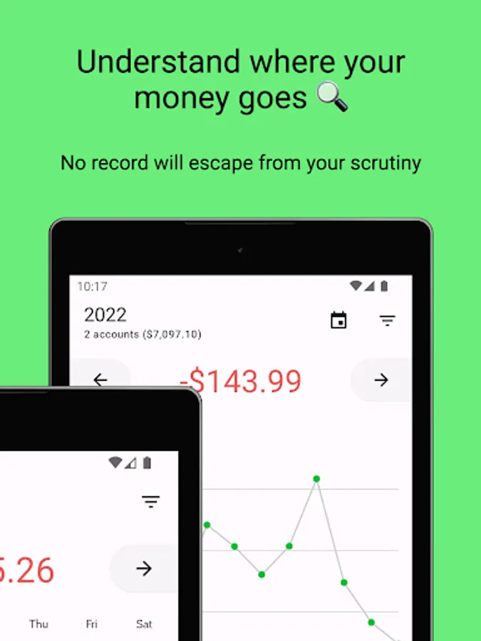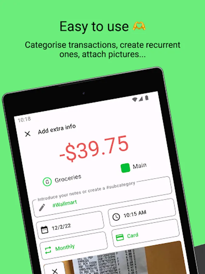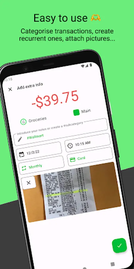 With Financiator, you don't have to waste time worrying about your finances. Our app features an easy-to-use and attractive design that makes it easy to organize your daily expenses, so you can stay on top of your finances.