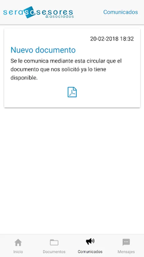 With the app you can Seras Advisors consultations and negotiations from your mobile, and send messages, receive news, view documents, etc.