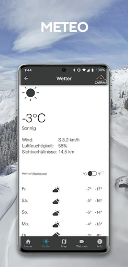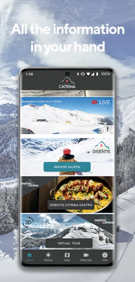 Stay up to date with the Disentis Catrina Experience APP. You'll find real-time information to spend a great day in the mountains of Disentis.