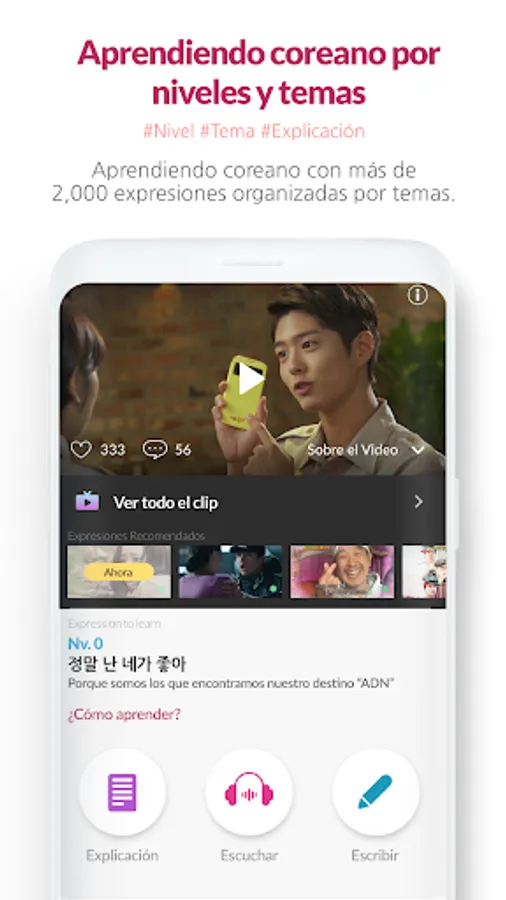 DICO is the innovative app in Spanish for learning the Korean language using K POP videos, dramas and entertainment programs.