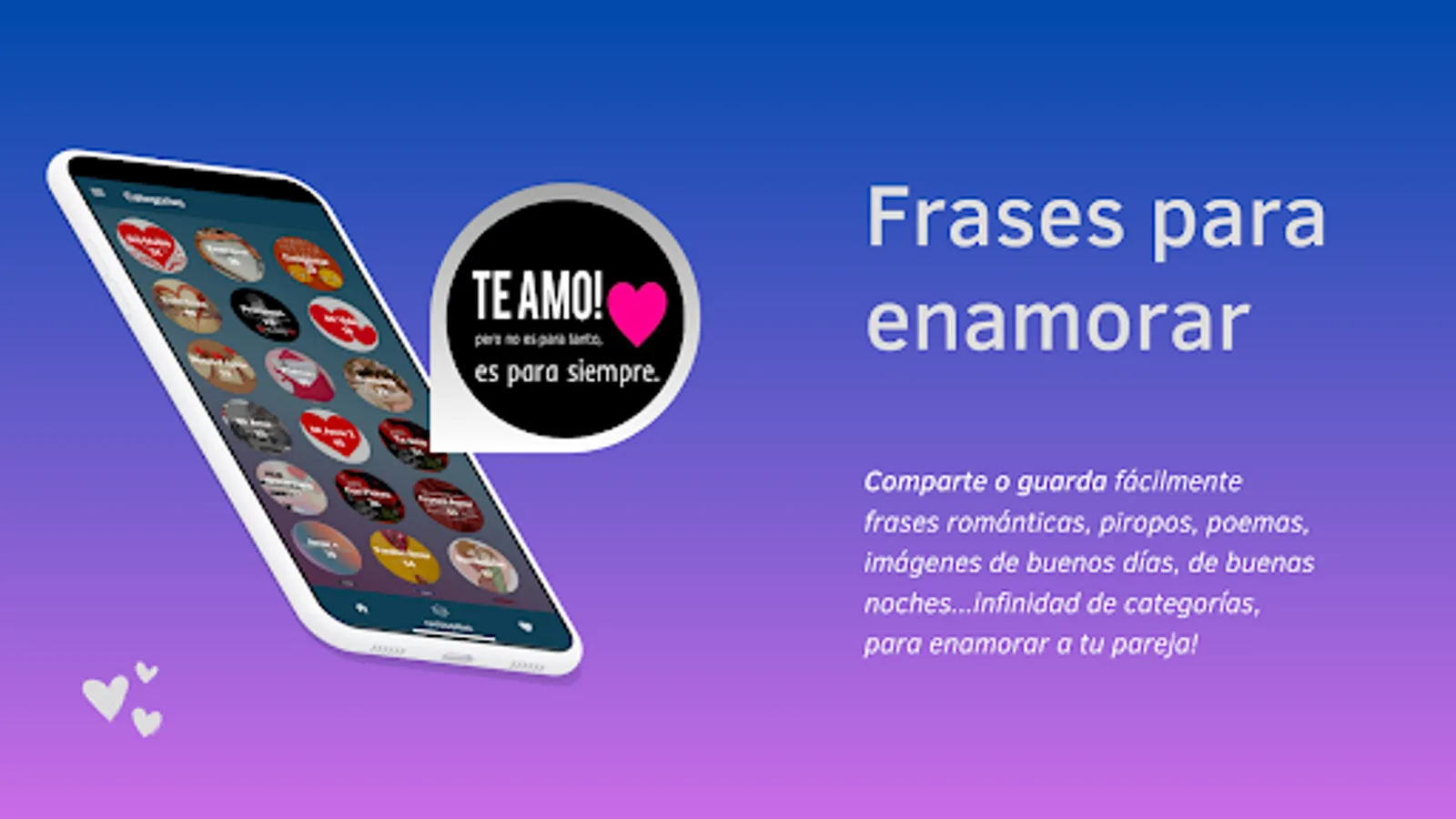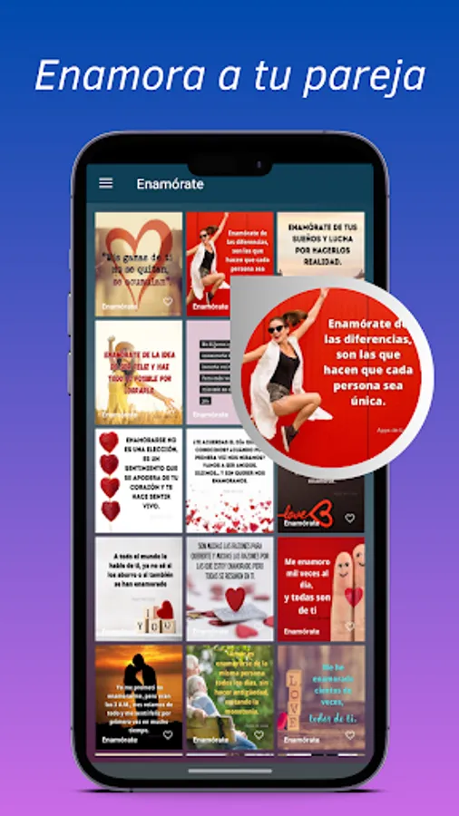 Download our application Phrases to Fall in Love More and discover how to win the heart of your partner in a unique and special way. Make every moment special with our images of love to dedicate!