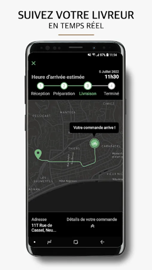 Be informed live of the preparation stages of your order and follow the progress of your delivery person in real time!