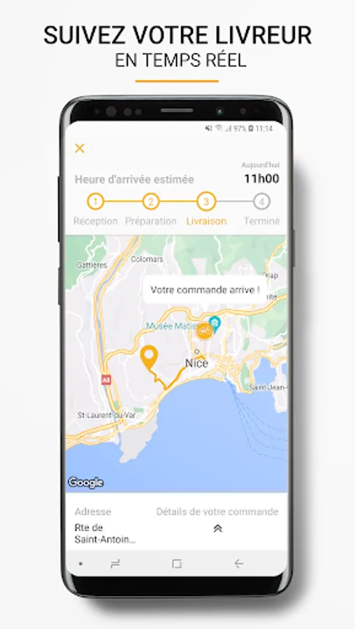 Be informed live of the preparation stages of your order and follow the progress of your delivery person in real time!