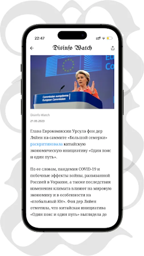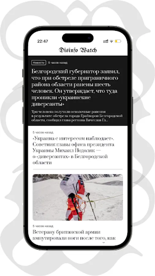 Disinfo Watch is a mobile application that will help you stay up to date with all the most relevant global socially significant news! With the development of information technology and social media platforms, it is essential to have a reliable tool to help separate the truth from misinformation.