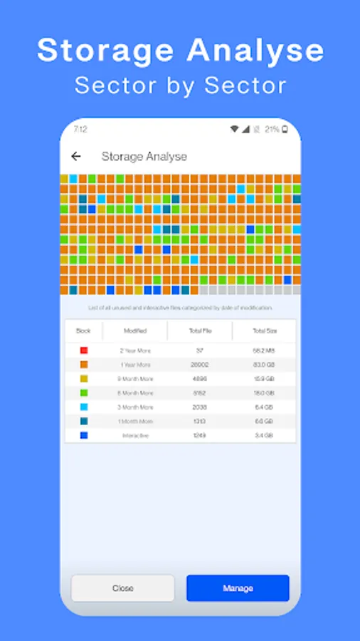 Scan sector by sector of your storage with files categorized by modification date and file size list, you can easily open video files and optimize or delete unusable files.