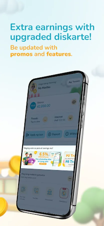 ● Use the QR Ph facility of the app for person-to-person (P2P) transactions to DiskarTech or any QR Ph-participating financial service provider