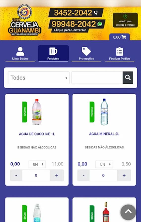 Order beer, wine, mineral water, whiskey, among other types of drinks.