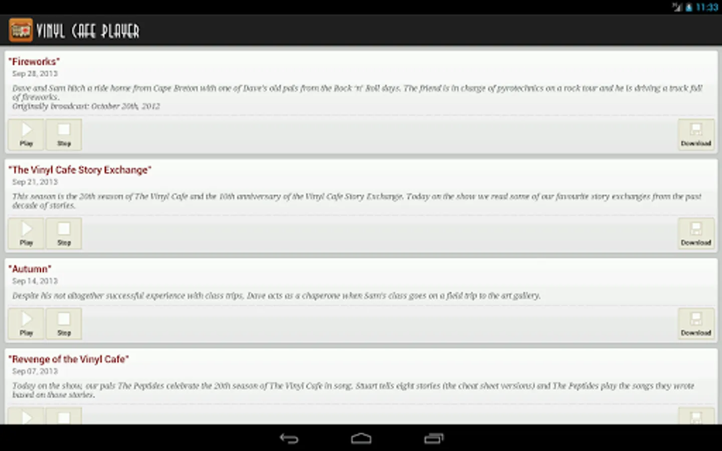 *** Please note that development of this app has ceased. Stuart McLean passed away Feb 15th, 2017. Content for this app is only available for as long as CBC keeps the stories available online ***