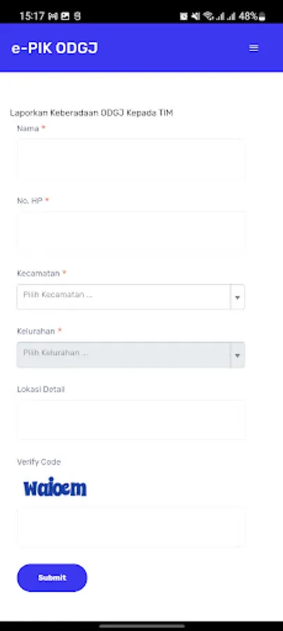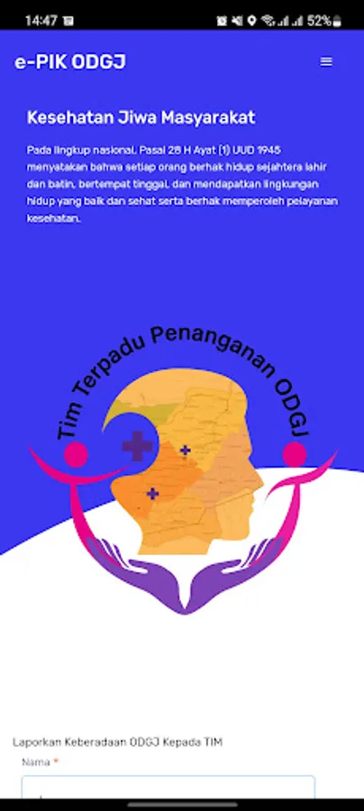 Application for reporting the presence of ODGJ in Payakumbuh City