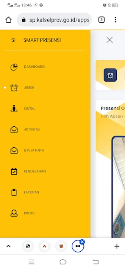 1. Absent & UB/SKJ : This feature is used when employees want to record daily attendance and attendance at UB/SKJ activities,
