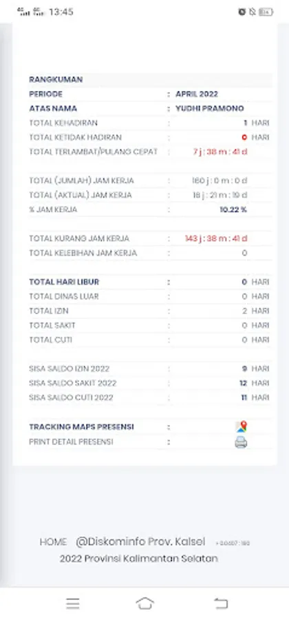 4. Report: This feature contains a report on his/her attendance and other permits that can be viewed directly using a cellphone by each employee,
