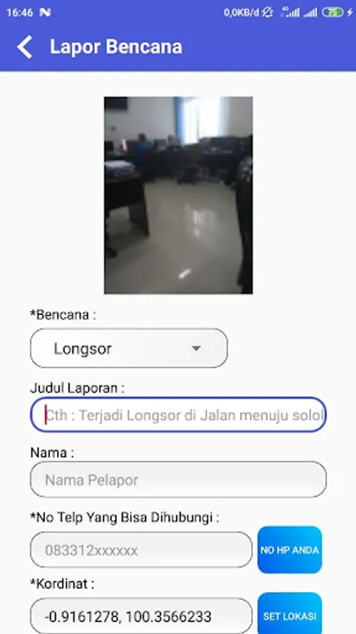 Aplikasi ini juga bisa digunakan oleh pengguna apabila di sekitar tempat tinggal ada daerah yang rawan dari bencana Longsor dan Terban. Pengguna tinggal memfoto daerah tersebut kemudian kirim laporan. Yang selanjutnya admin akan memproses laporan apakah benar adanya kejadian tersebut setelah itu, apabila sudah dilakukan penanggapan admin akan membuat laporan penanganan tersebut