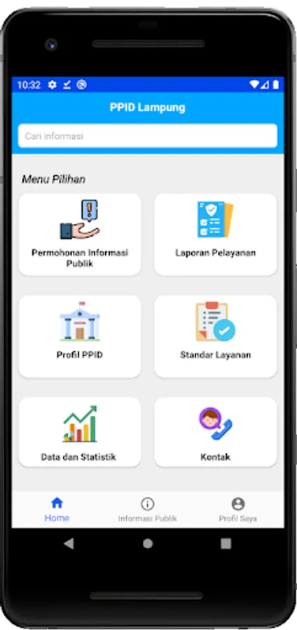 The Main Information and Documentation Management Officer (PPID) Application for the Lampung Provincial Government is an application built by the Lampung Provincial Government as a means of submitting and delivering public information online that can be accessed via mobile devices for applicants for public information as a form of implementing the Government's public information disclosure. Lampung province. The application in this mobile version was developed for the needs of the wider community so as to allow the public to participate in controlling all information within the scope of the Lampung Provincial Government.