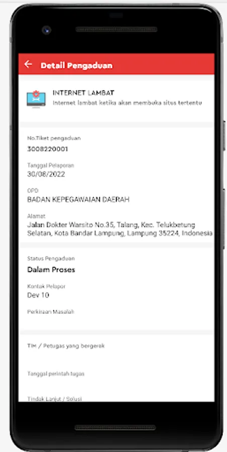 Application to Check Information and Complaints on the Lampung Provincial Government OPD Internet Service