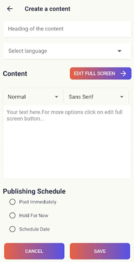 Content will be created by the platform if needed and the translation service with multiple languages support is also available.