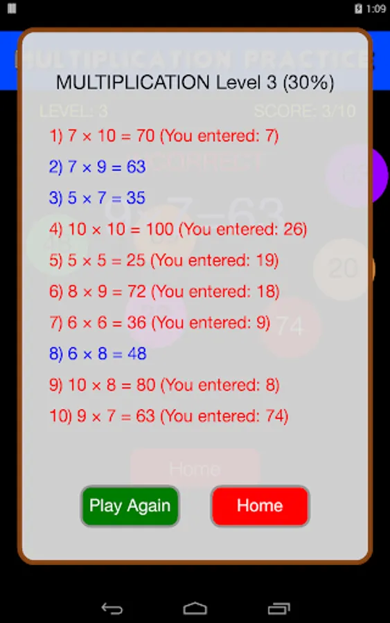 A report feature is also provided as an option, just like a quiz or test, which shows the results and correct answers after 10 questions.