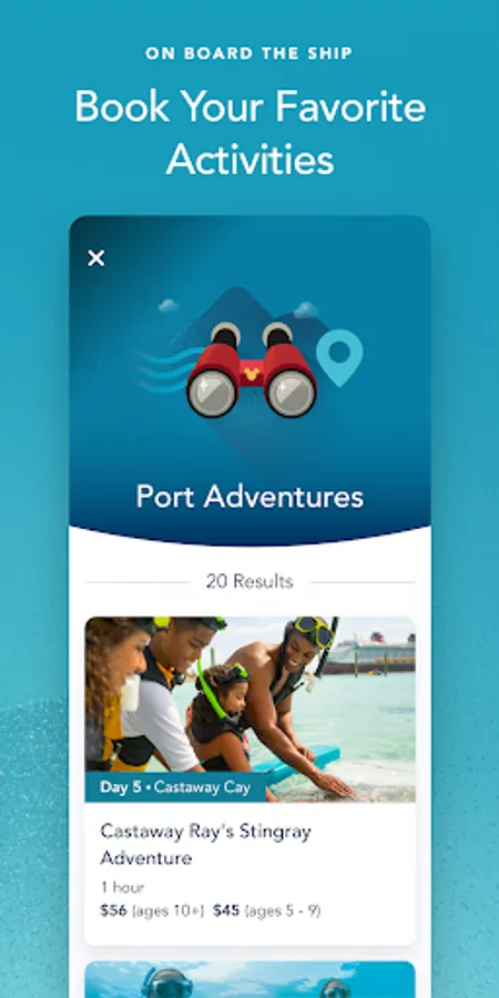 · View booked activities, including Port Adventures, Adult Dining, Onboard Fun, Spa & Fitness or Nursery.