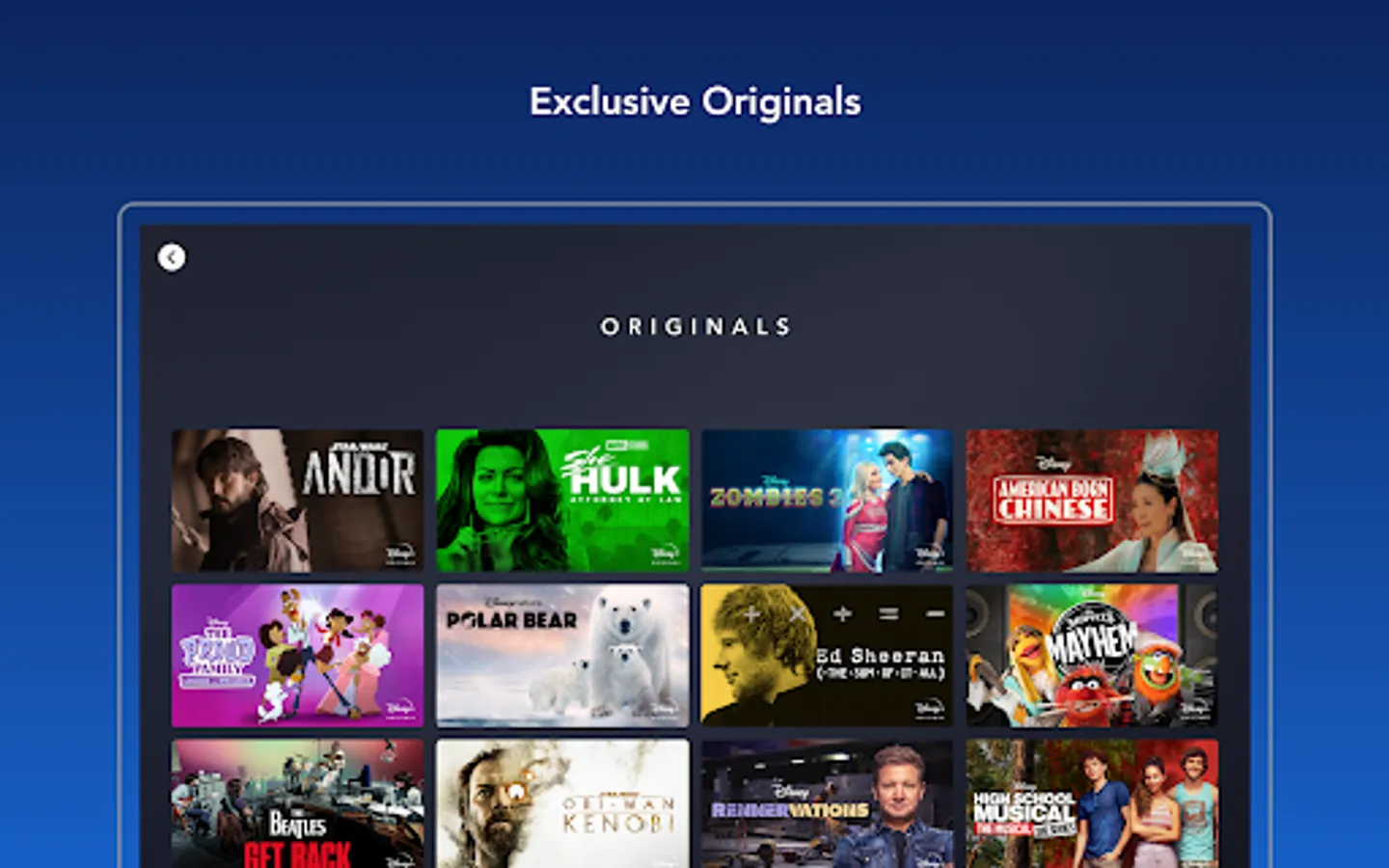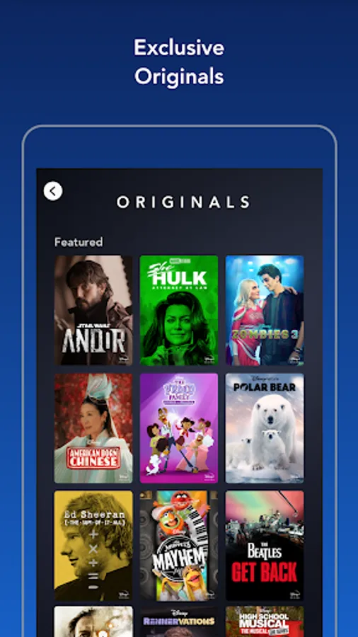 • Exclusive new Originals from Disney, Pixar, Marvel, Star Wars, and National Geographic.