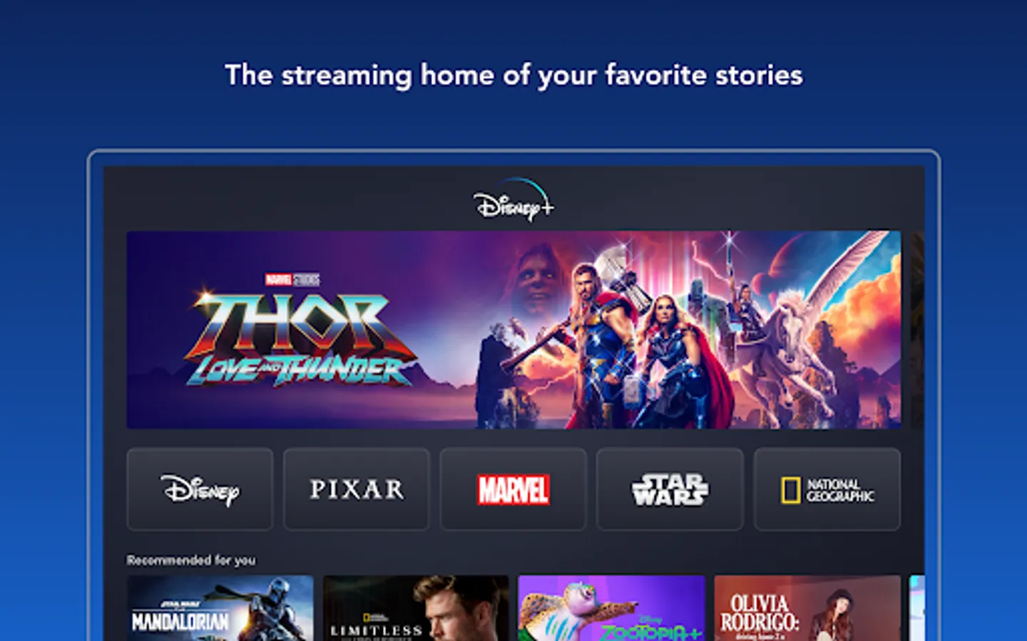 Disney+ is the streaming home of your favorite stories. With thousands of hours of entertainment from Disney, Pixar, Marvel, Star Wars, and National Geographic, there's always something to explore. Stream the latest movie releases, exclusive Original series, and a catalog of classics with more stories added every week.